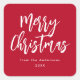 Modern holiday stickers featuring "Merry Christmas" displayed in white brush script lettering with a red background. Personalize the simple Merry Christmas stickers with your name and year in white lettering. The red Christmas stickers are perfect for sealing holiday envelopes, party favor bags, and gifts.