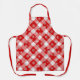Apron in a large, deep red and white buffalo plaid pattern, with a flurry of white snowflakes