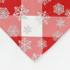 Fleece blanket in a large, deep red and white buffalo plaid pattern, overlaid with scattered white snowflakes