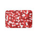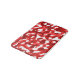 This rug is just as pictured! Vibrant Red and very soft material, nice to step in out of the tub!  Matches my set of accessories and  shower curtain! A must have to add some whimsy to your bathroom! Very nice, vibrant and clear print! Beautiful!