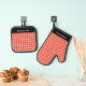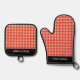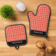 Red and White Check Chequered Personalised Name Oven Mitt & Pot Holder Set
