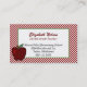 Great looking teachers business card, with a dark red and white chequered background, on the front of the card. A white text area, edged with an embossed looking green border, has a juicy red apple decorating the bottom left corner. The back of the card is designed as an appointment card. All text is customisable to say what you want. Nice business card template for teachers and tutors.