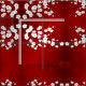 Pretty white and black cherry blossom branch on a shimmering red background.