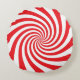 You can change the festive red peppermint background on this round pillow to another colour. Add a name or monogram to create your own personalised design. You can even add curvature in the font settings.