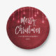 Red and White Merry Christmas Script and Sparkle Lights Holiday Plates are perfect for a modern and elegant Christmas Card.