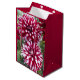 Glamorise your gifting with this medium size gift bag with red trim and features a photo image of gorgeous, red and white, variegated Dahlias. A lovely, floral design! Select your gift bag style.