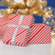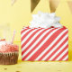 A bright red and white stripe design that looks beautiful accented with contrasting ribbons or embellishments.