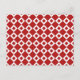 A bold graphic pattern of interlocking red and white diamond shapes. The white diamonds each contain a small red diamond making red the dominant colour of the geometric design.