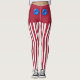 Bright red and white stripes in different widths on the bottom, with a solid red color block at the top, complete with bright blue buttons, turn these leggings into Santa's elf trousers! Cute, fun, and funny, perfect for Christmas morning.