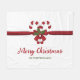 Destei's original illustration of two red and white striped Christmas candy cane treats decorated with a red bow and a Christmas holly / Common holly plant. There are also two personalizable text areas.