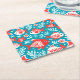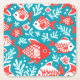 Red and white fish pattern blue square paper coaster