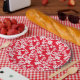 Red And White Floral Repeating Pattern Paper Plate