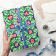 This holiday themed pattern shows a green leave background with red and white flowers with a blue background.
