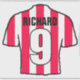Football sticker. Red and white Football Shirt Design to Personalise. Add Name and Number.