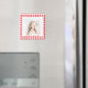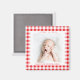 Cheery red and white gingham check is a charming way to frame the photo of a new baby and celebrate the arrival with a square magnet featuring the name and birthdate. Make this baby magnet for a new parent, grandparents and family or friends.