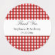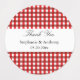 Red and white gingham pattern bbq wedding thank you labels. Two shades of red stripes.