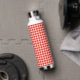 I ordered a custom water bottle and the design came out better than I thought. I like how the water bottle has a gloss finish and feels slick. The letters and numbers on it have an outline you can feel and that’s my favorite part. It doesn’t smell like metal on the inside! That’s what I was scared of. Beautiful work. Will definitely order more in the future. Thank you!