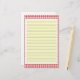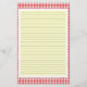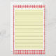 Red and white Gingham Stationery with optional lines. Use the customise it button to change the background colour behind the lines. Delete the lines for the unlined option.