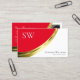 Very elegant red and white coloured business card design with a noble shimmery gold decor.
