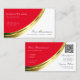 Very elegant red and white coloured business card design with a noble shimmery gold decor.