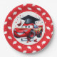 A Fun And Colorful Red And White Kids Graduation Paper Party Plates Designed With A Graduating Sports Car
