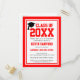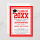 This Red and White Class Year Graduation Party Invitation Postcard is a great way to celebrate the high school or college graduate. Personalise this with the name, school, year, and party details. This invite features bold typography in red school colours with a red and white border.