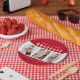 Graduation Photo Collage Congratulations Red and White Paper Plates.