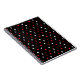 Red and white hearts on black notebook