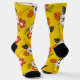 A bright and retro design in Hawaiian style. Hibiscus flowers in red and white on a bright yellow background. Tropical feeling on your feet!