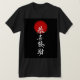 This image features a bold, minimalist design centred around Japanese calligraphy. The vertical white text is set against a solid black background, creating a striking contrast. A vibrant red circular brushstroke at the top of the image adds a touch of colour and visual balance. The design conveys a sense of tradition and elegance, perfect for use on a t-shirt, poster, or other graphic materials.