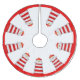 Red and white lighthouses on white tree skirt.