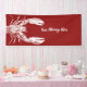 Add your own message to create custom party supplies for your special event. This banner features an illustration of a lobster in white against a dark red background. It's ready to be personalised with your own text in white script or cursive writing.