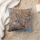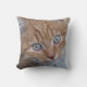 Photograph of a red and white, long-haired, green-eyed tabby cat face. Pillow type, size and the colour on the back is customisable.
