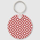 This stylish red and white geometric pattern is an original ornamental design. White meanders angle around red diamonds containing white diamonds. Red zigzags provide subtle separation between the winding paths.