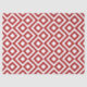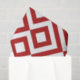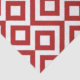 This bold, geometric red and white pattern is an original ornamental design. White meanders angle around red diamonds containing white diamonds. Red zigzags provide subtle separation between the winding paths.
