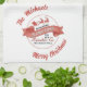 Red and White Merry Christmas Personalised Tea Towel