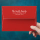 Red and White Modern Holiday Greeting Card Envelope featuring your family name in modern calligraphy font style and address in white modern font style on red background.