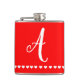 Red and White Monogram Initial Hip Flask