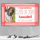 Celebrate your graduate with this Red and White One Photo Geometric Grad Banner. Personalise with your graduate's photo, name, school and class year. This class of 2024 school colours banner features feminine font and a decorative red and white border.