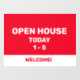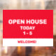 Looking to sell or rent your home? This eye-catching and professional looking window cling sign is perfect for letting everyone know about your open house. It is ready to be personalised with your details. It features a bold red and white design.