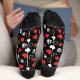 These adorable and vibrant socks are perfect for any dog or cat lover! They feature a charming, all-over seamless pattern of black paw prints and a mix of red and black hearts on a crisp white background. The design is cheerful and makes a wonderful gift for pet parents, vets, or anyone who cherishes their furry friends. With black toes and heels for a sporty contrast, these comfortable, mid-calf socks are great for everyday wear, adding a touch of pet-loving flair to any outfit. Show off your love for animals with every step you take!