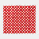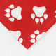This fleece blanket has a pattern of white dog paw prints on a red background colour.