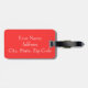 Red luggage tag features your monogram initials on one side, and your name and address on the other. The font is glamourous and elegant in crisp lovely white.
