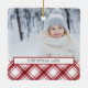 This cute photo ceramic ornament features a red and white buffalo check plaid pattern with text and photos for personalising.