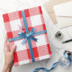 This red and white Christmas tartan geometric pattern is a cool way to wrap your gifts this holiday season.