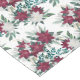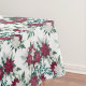 This Holiday theme table cloth features a pretty pattern of burgundy red and white poinsettia blossom bouquets embellished with Christmas greenery. Gold centres on the blossoms add extra interest and a bit of sparkle. The pattern is placed on a snow white background. Beautiful and festive for your Holiday table!