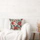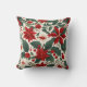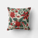 Red and White Poinsettia Flowers and Holly Berries Cushion