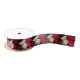 Pretty holiday ribbon featuring a pattern of repeating photo images of a red and white, variegated Poinsettia. Use for gift wrapping, crafting, holiday decor, etc. A fun, floral design for the holidays! Select your ribbon length, and style. Image printed on one side only. NOTE: Image optimised for 1.5" ribbon only.