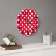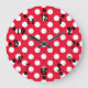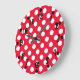 Fun wall clock, with a red background, with white polka dots. Whimsical black numbers and dots around the edge. Customise to add any text you want. Makes a great gift idea.