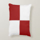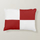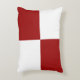 Classic accent pillow features two red rectangles and two white rectangles in a chequered pattern in this clean digital design.
